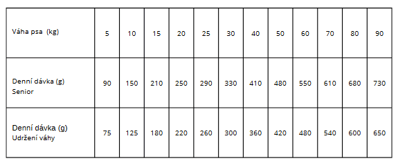 Superprémiové bezobilné krmivo určené pro podporu zdraví srsti a kůže zvířete, oběhového systému a srdce a podporuje perfektní tělesnou kondici a imunitu psů seniorního věku.
