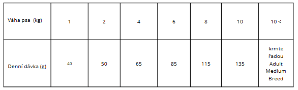 Při váze psa nad 10 kg krmte řadou Adult Medium Breed (dospělý pes střední plemena).