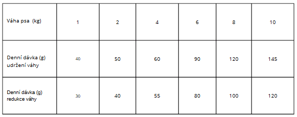 Hrubý protein 26 %, obsah tuku 12 %, vlhkost 10 %, hrubý popel 5,5 %, hrubá vláknina 8,5 %, vápník 1,1 %, fosfor 0,9 %, Omega-3 mastné kyseliny 1,5 %, Omega-6 mastné kyseliny 1,3 %.
