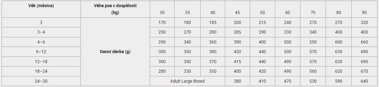 Kompletní suché krmivo z kuřecího masa pro štěňata velkých plemen, které dodá dospívajícímu psovi potřebnou energii a dostatek živin pro jeho růst a vývoj. Celkem 90 % z obsažených bílkovin je živočišného původu. Granule obsahují chondroprotektiva, která pomáhají pečovat o kloubní chrupavku během růstu a předchází tak problémům s klouby v dospělosti. Vitaminy a minerály přispívají k celkovému zdraví a posílení imunity. Lososový olej pomáhá pečovat o zdraví kůže a zářivou srst.