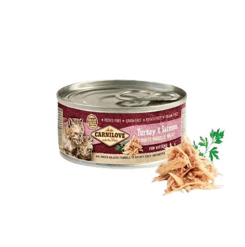 Carnilove Cat konzerva je kompletní superprémiové vlhké krmivo pro koťata. Receptura z krocaní svaloviny a vnitřností je zcela bez obilovin a dalších přidaných látek. Lososový olej zaručí vašemu koťátku zdravou srst a kůži. Brusinky zajistí zdravé močové cesty. Konzerva obsahuje pouze trhané maso z krocana, játra, srdce a lososa.