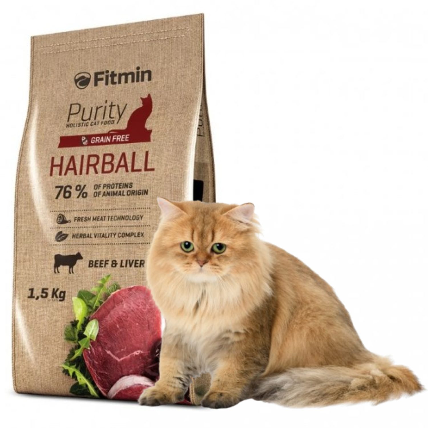 Kulinářský hovězí zážitek pro Vaši kočku. To je krmivo Fitmin cat Purity Hairball. Jedná se o holistické krmivo pro kočky, ve kterém najdete čerstvé hovězí maso, bylinky pro dobré trávení, ovoce i zeleninu. Nejenže uspokojíte mlsné jazýčky Vašich koček, ale zároveň jim poskytnete prvotřídní kvalitu. Granule pro kočky Fitmin cat Purity Hairball je tzv. Grainfree krmivo, to znamená, že neobsahuje obiloviny, je bezlepkové a snižuje potencionální riziko výskytu alergických reakcí (např. na pšeničný lepek a kukuřičný gluten). Krmivo dále napomáhá průchodnosti chlupových chomáčků skrze trávicí trakt. Lněné semínko je vynikajícím zdrojem omega-3 mastných kyselin pro kvalitní stav kůže a srsti. Pivovarské kvasnice pro podporu chuti k jídlu, trávení a snížení únavy. Působí též jako repelent. V neposlední řadě má krmivo důležitou detoxikační funkci díky bylinné směsi, která má ovšem i mnoho dalších blahodárných účinků.