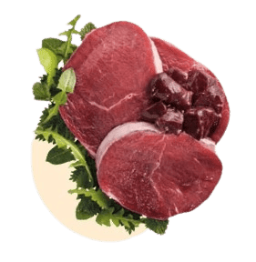 Maso (50 % hovězí maso a játra čerstvé, 13 % hovězí maso sušené, 13 % kuřecí maso sušené, 4 % vepřová játra), farmářské brambory, hrášek, drůbeží tuk, řepná vláknina, přírodní vláknina, slepičí vejce, lněné semeno 1,5 %, pivovarské kvasnice 1,3 %, inaktivované kvasinky rodu Saccharomyces cerevisiae, za studena lisovaný olej z norských lososů, bylinný komplex (lístky kopřivy dvoudomé 0,25 %, lístky smetánky lékařské 0,25 %, květy heřmánku pravého, lístky meduňky lékařské, květy lípy srdčité), jablka, minerální látky, řasa Schyzochitrium lamacinum, kořen čekanky, juka shidigera.