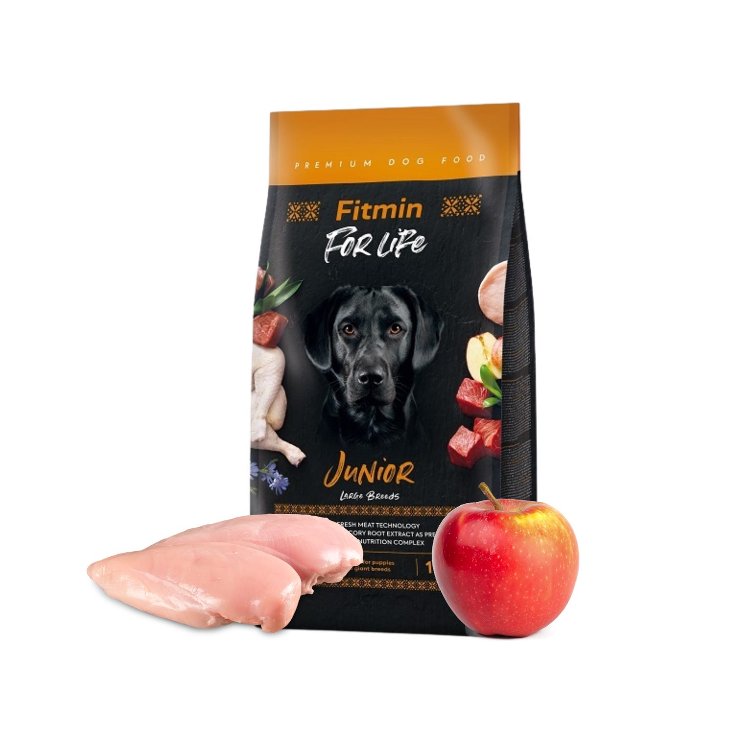 Fitmin For Life je tradiční a kompletní krmivo prémiové kvality. Tato receptura je určena pro štěňata velkých a obřích plemen, ve věku od 5 do 18 měsíců. Mladý pes neskotačí o nic míň než štěně, přičemž nároky na jeho výživu se mění, proto potřebuje speciální krmivo, které individuální požadavky plně uspokojí. Zcela zásadní je kontrolovaný obsah energie pro zdravý vývoj kostry a podpora výživy kloubů přídavky glukosaminu a chondroitin sulfátu. Složení je určeno pro psy v běžné zátěži. Pro zachování živin ve vysoké kvalitě a lahodnou chuť, toto krmivo obsahuje čerstvé maso bez kosti. A každá granule je navíc potažena játrovým obalem. Krmiva z řady Fitmin For Life byla vyvinuta tak, aby uspokojila potřeby psa jak podle jeho životního období, tak i podle toho, jak je veliký. Díky stejnému obsahu surovin můžete přecházet z jednoho typu krmiva na druhé bez nutnosti postupného přechodu a míchání krmiv.