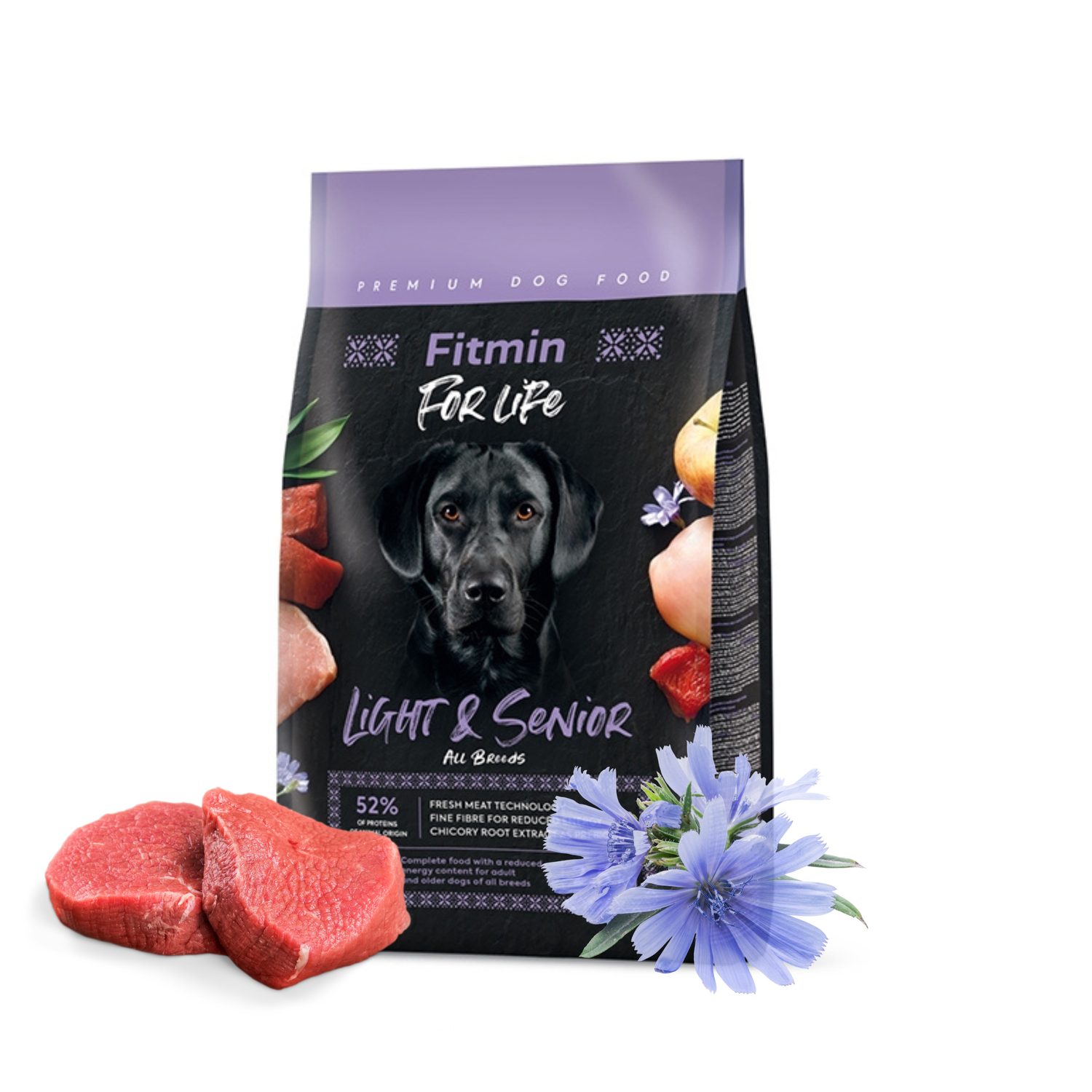Krmiva z řady Fitmin For Life byla vyvinuta tak, aby uspokojila potřeby psa jak podle jeho životního období, tak i podle velikosti. Díky stejnému obsahu surovin můžete přecházet z jednoho typu krmiva na druhé bez nutnosti postupného přechodu a míchání krmiv. Základem krmiva je kombinace živočišných složek a kvalitní vlákniny pro podporu peristaltiky střev. Díky nižšímu obsahu tuku je vhodné pro psy, kteří potřebují udržet správnou tělesnou hmotnost. Navíc granule obsahují výtažek z kořene čekanky, který působí jako prebiotikum pro podporu střevní mikroflóry.