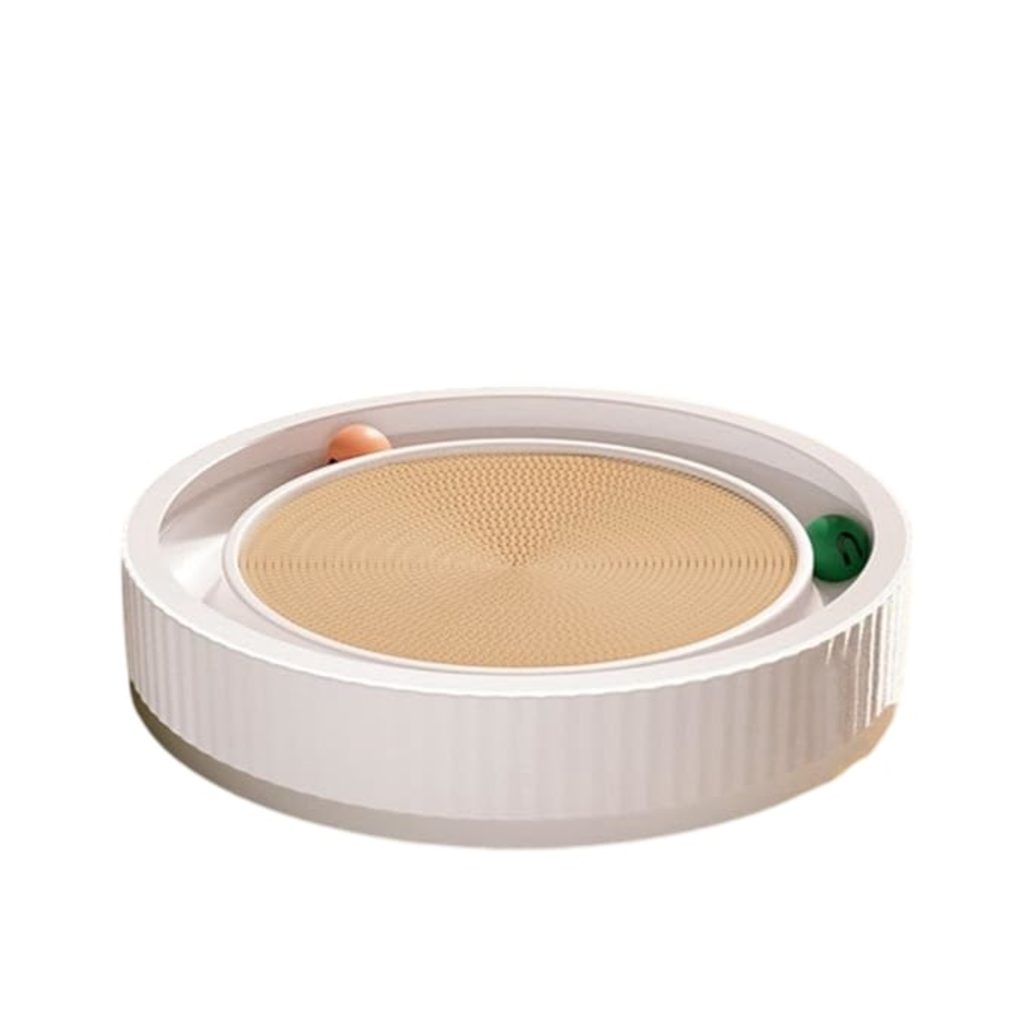 Toto odolné škrabadlo pro kočky lze použít jako škrabadlo, jako odpočívadlo i jako zábavnou hračku. Uspokojte přirozený instinkt kočky a zároveň snižte riziko poškození koberců, záclon a nábytku. Tunel po obvodu škrabadla obsahuje barevné míčky, které se točí v kruhu a kočička se je snaží chytit. Škrabadlo je vyrobeno z odolného tvrzeného kartonu.
